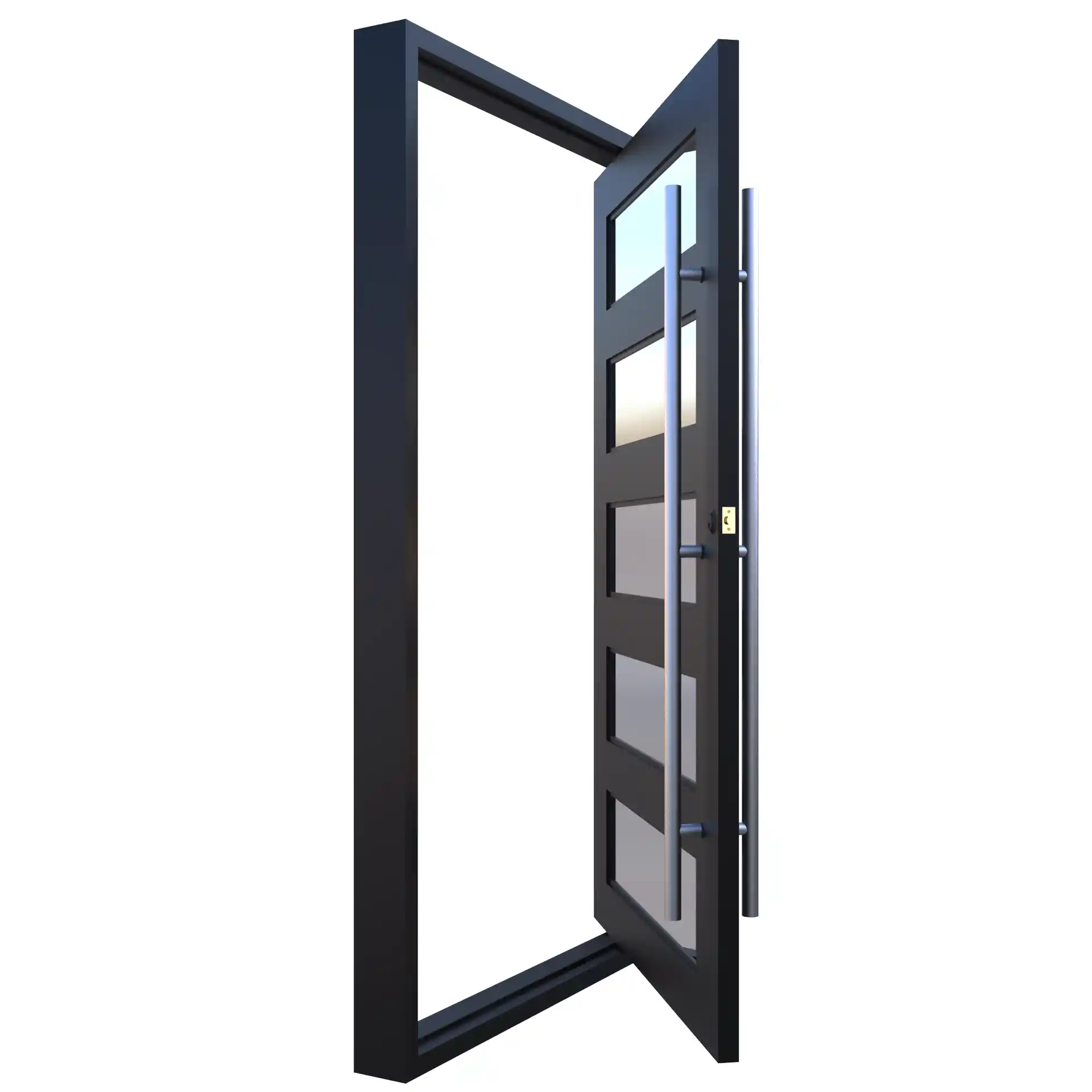 Ideal for large openings, aluminium pivot doors rotate smoothly on a central axis, creating a bold architectural statement.
