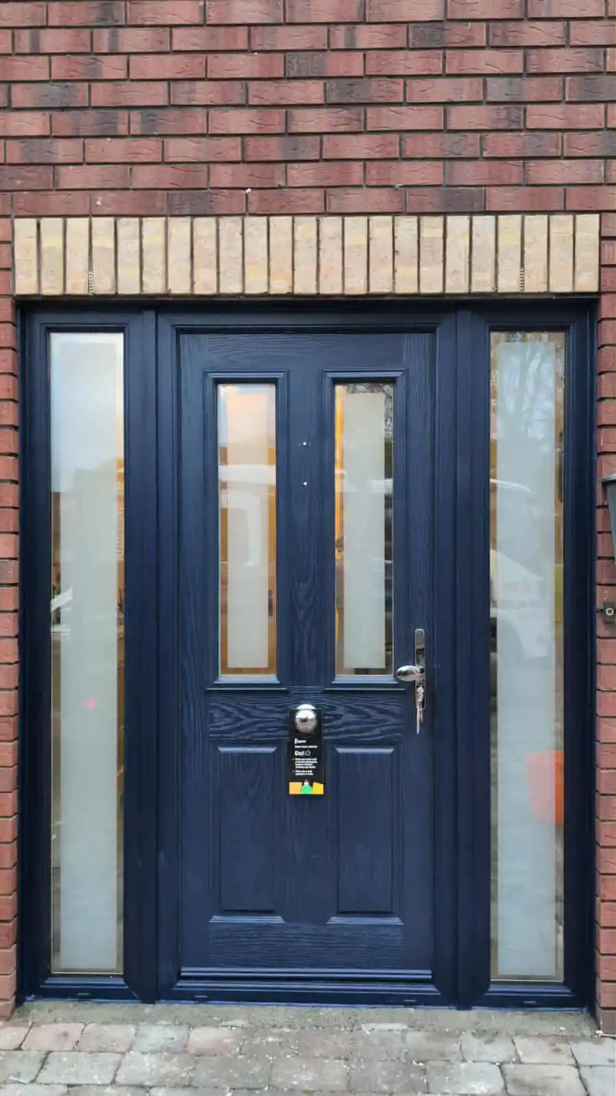 - Secure composite front door with multipoint locking and elegant glazed panels.